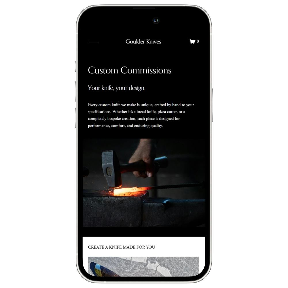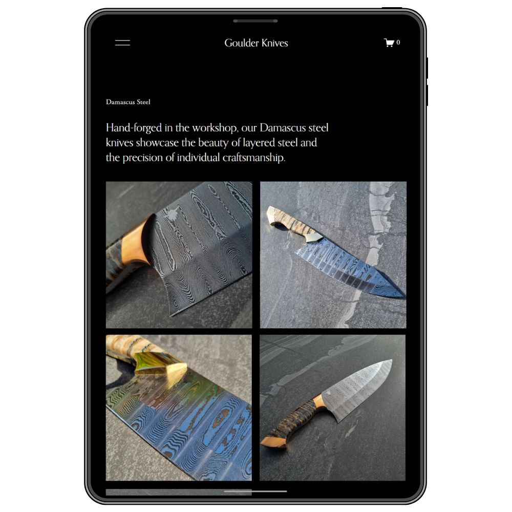 “The website Cat built for Goulder Knives showcases our work beautifully while also working as a genuine sales tool. The journey from viewing our knives to enquiring about custom commissions feels clear and effortless, which has made a real difference for our business.”